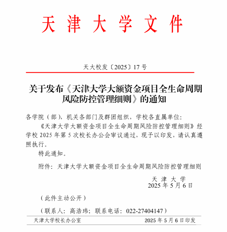 亲爱的老师同学们,为了让学校大额资金项目使用更安全、更高效,咱们有了一个新“神器”——《天津大学大额资金项目全生命周期风险防控管理细则》(简称《细则》),正式发布啦!