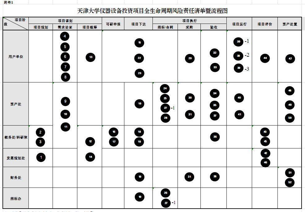 其中,“仪器设备投资项目”共划分为项目谋划、科研申报、项目下达、项目执行、项目运行、项目评价和资产处置7个阶段,并在此基础上细分为11个关键环节,建立了52项管理步骤;“房屋建设与修缮项目”共包括论证规划、立项申报、投资批复、项目建设、项目验收和使用评价等6个阶段,8个关键环节和24项管理步骤。