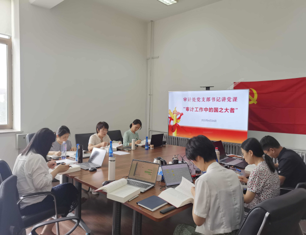 2022年6月26日,天津大学审计处迎来建处37周年生日。上午8:30,卫津路校区第九教学楼312会议室墙壁上悬挂鲜红的党旗,审计处支部召开党员大会,接收新同志加入组织;学习传达中共天津市第十二次代表大会精神;结合工作实际,感悟审计工作中的国之大者。